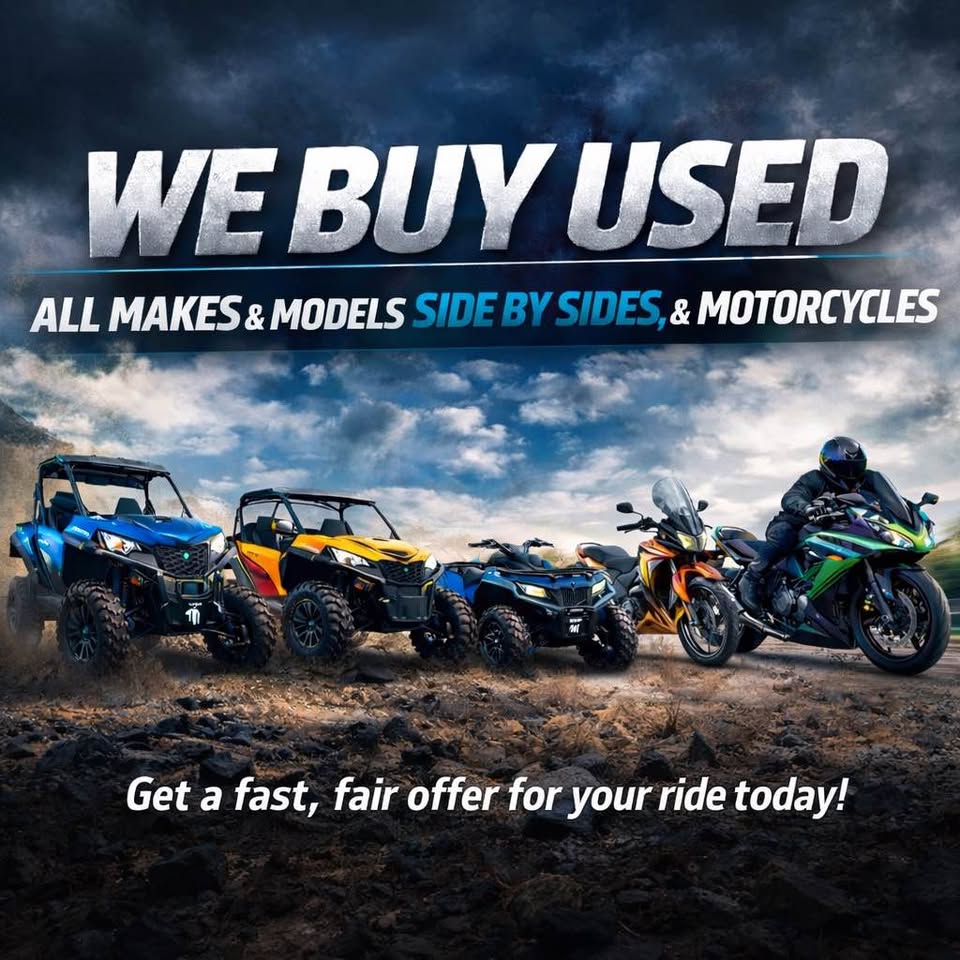 We're happy to consider bikes, atvs, side by sides, boats, cars, rvs, etc.