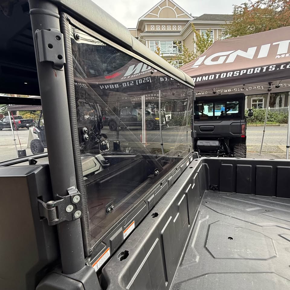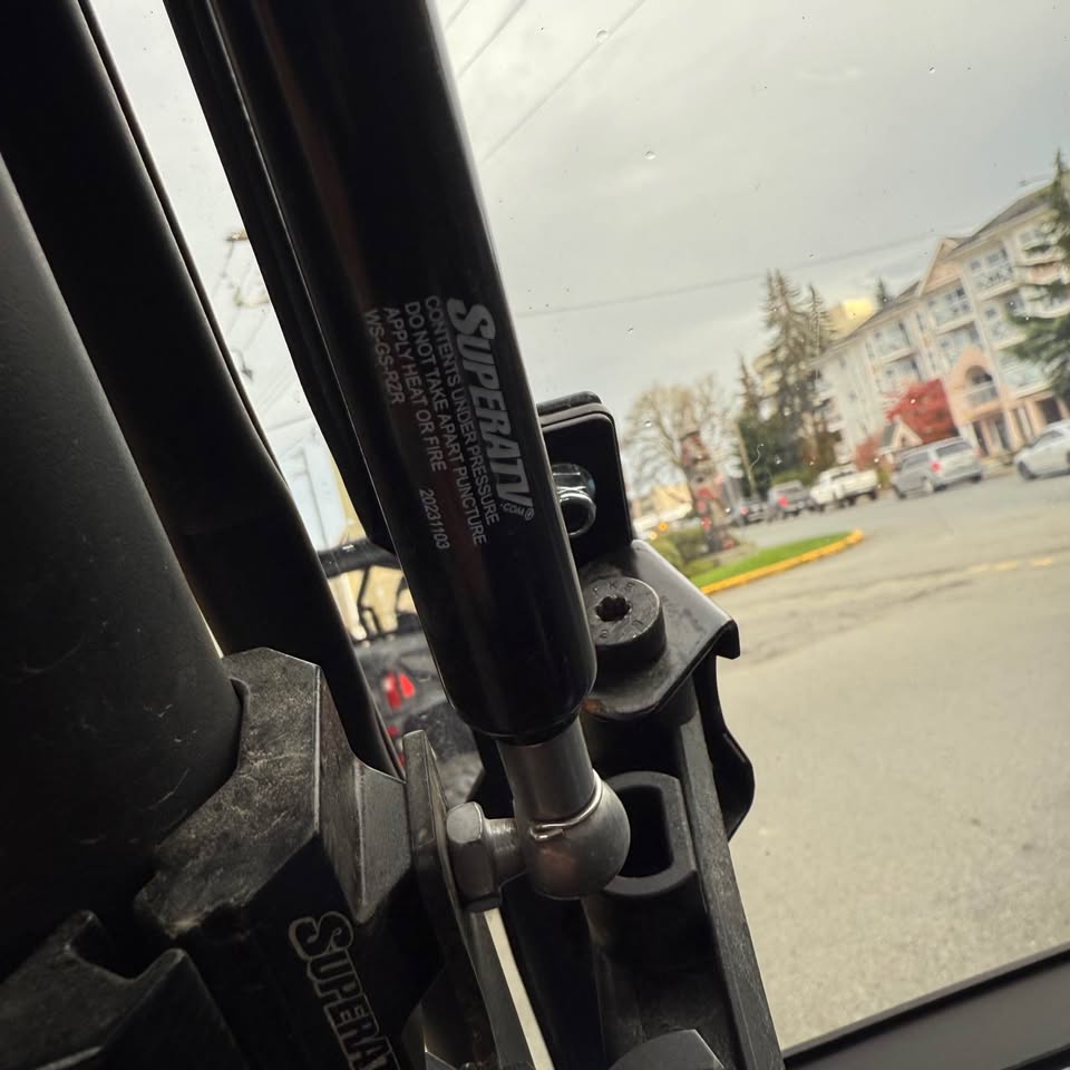 Equipped with a SuperATV tilt windscreen, rear windscreen, and LED light bar.